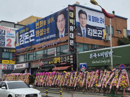 청양군수 3선 도전 중인 김돈곤 예비후보가 지난 4월22일 후보자 사무실 개소식을 앞두고 보조금 수혜자인 사회단체에 화환을 보내달라고 요청한 사실이 알려져 자질 논란이 일고 있다. 특히 공직선거법 제90조(시설물설치 등의 금지)에 의하면 누구든지 선거일 전 120일(보궐선거 등에서는 그 선거의 실시 사유가 확정된 때)부터 선거일까지 선거에 영향을 미치게 하기 위하여 이 법의 규정에 의한 것을 제외하고는 다음 각 호의 어느 하나에 해당하는 행위를 할 수 없다.더욱이 이 경우 정당(창당준비위원회를 포함한다)의 명칭이나 후보자(후보자가 되려는 사람을 포함한다. 이하 이 조에서 같다)의 성명·사진 또는 그 명칭·성명을 유추할 수 있는 내용을 명시한 것은 선거에 영향을 미치게 하기 위한 것으로 본다(개정 2023.8.30.)1. 화환·풍선·간판·현수막·애드벌룬·기구류 또는 선전탑, 그밖의 광고시설을 설치·진열·게시·배부하는 행위를 명시하고 있다. 22일 사회단체 및 기업인들에 따르면 김돈곤 후보가 직접 보조금 수혜단체 책임자와 통화에서 “행사에 관심을 갖고 화환을 보내달라”는 취지의 요청을 전달했다는 것.더욱이 김돈곤 예비후보 선거 종사자 A씨도 “건설업자 등에 화환을 요구한 것으로 드러나 파문이 예상되고 있다.이에 건설업자와 일부 단체는 “정치적 중립을 지켜야 하지만 조그마한 동네에서 ‘목구멍이 포도청’이라 어쩔 수 없이 화환을 보냈다”고 말했다.